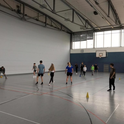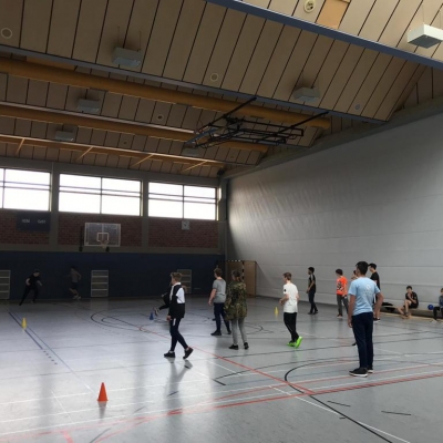 Dazwischen wurden die Sportler und Zuschauer mit leckeren Snacks, Obstsalat und Getränken von der Klasse 11Z, die sich dieses Jahr im Rahmen des Faches BSK zusammen mit der SMV um die Organisation des Turniers kümmerte, versorgt. Die Schülerinnen und Schüler erarbeiteten in ihrem BSK Unterricht in den letzten Wochen eigenständig ein Veranstaltungskonzept und setzten dieses in Teamarbeit anhand eines Organisationsplans um. Nach der Theorie folgte die Praxis, also die wirkliche Durchführung des Völkerballturniers mit dem damit verbundenen Catering: Spielpläne erstellen, Urkunden gestalten, Essen und Getränke einkaufen, Preise kalkulieren u.v.m. Stolz kann das Orgateam der 11Z nun auf ihr Projekt zurückblicken. Sie haben in Teamarbeit eine „Veranstaltung zum Erfolg geführt“.