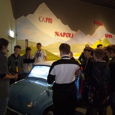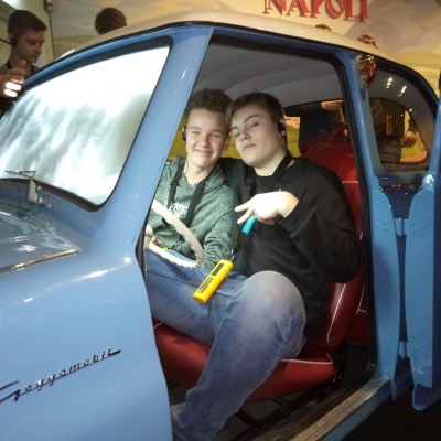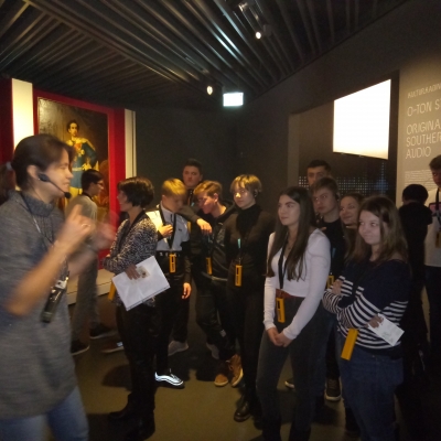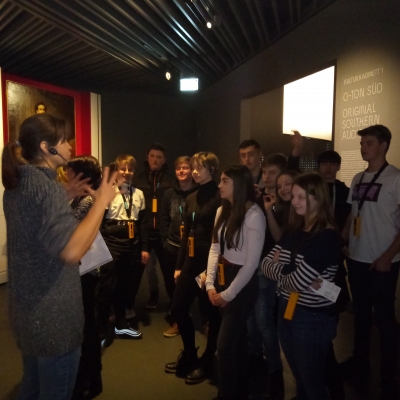 Das erst im Juni eröffnete Museum lud die Schülerinnen und Schüler, die schon im Foyer durch einen überdimensional großen, original Oktoberfestlöwen und den darüber weiß-blauen Bayernrautenhimmel begrüßt wurden, zu einer kurzweiligen Führung ein.