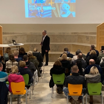 Am 28.02.2023 fand unser Infoabend zum Übertritt statt: Information, Unterhaltung, Austausch. Mit Lehrkräften, Erziehenden und Lernenden. Ein schöner Abend, der hoffentlich der Beginn unserer Erziehungspartnerschaft war. Wir freuen uns auf jeden Fall schon auf Ihre Anmeldung und die Zusammenarbeit!