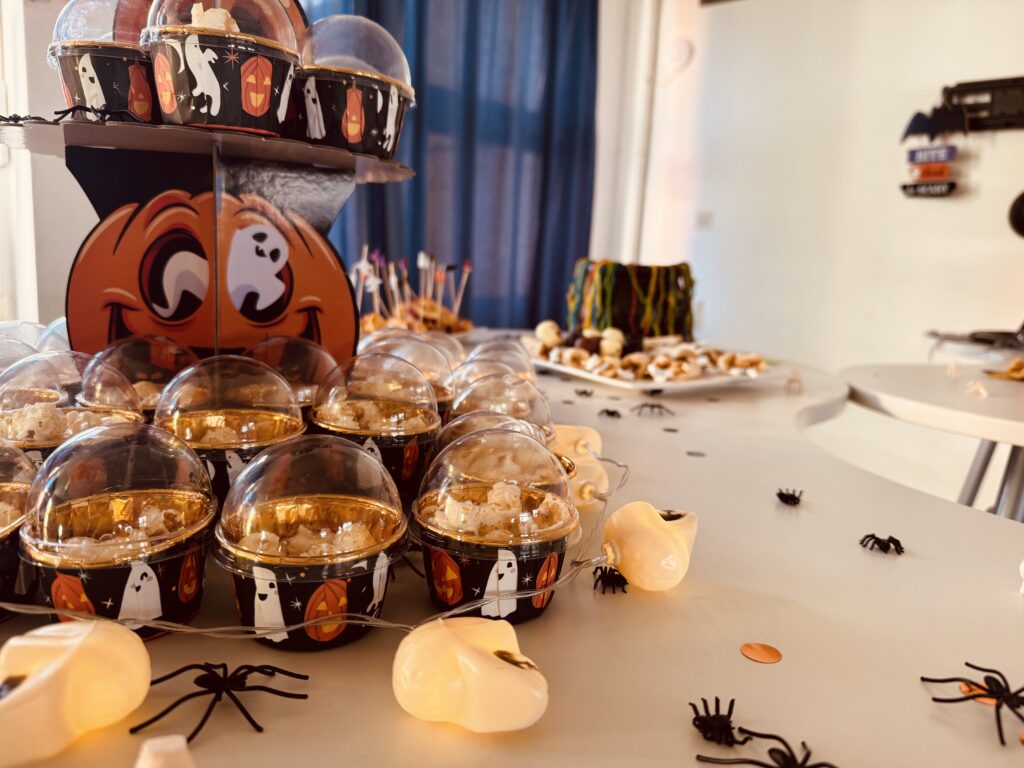 Beim Schminken verwandelten sich die Schülerinnen und Schüler in Hexen, Vampire und Geister. Danach stärkten sich alle bei gruseligen Snacks und Getränken, bevor sie im Escape Room Teamgeist und Köpfchen bewiesen.